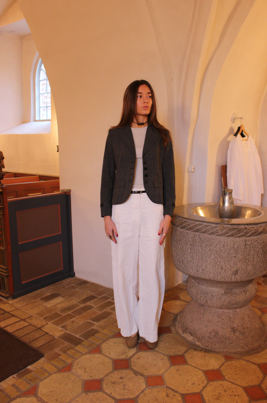 - Figursyet blazer i grå m. tern